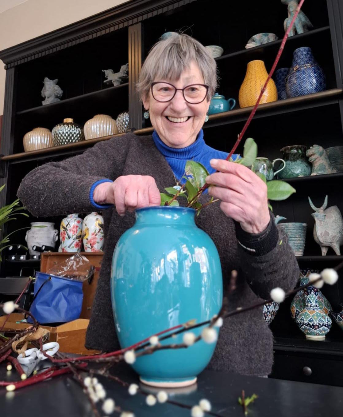 In deze bijzondere middag leer je precies dat. Je ontdekt hoe je met eenvoud en balans een natuurlijk arrangement maakt dat de Perzische vaas als middelpunt laat stralen. Geen overdaad, geen drukte — juist door bewust te kiezen wat je toevoegt, en wat je weglaat, ontstaat er iets moois.
